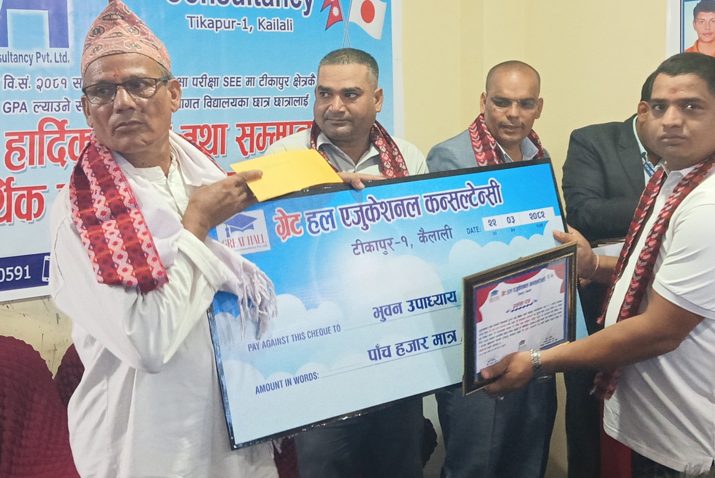 टीकापुरमा आयोजित कार्यक्रममा सम्मानित हुने हरूमा गणेशबाबा इङ्लिस बोर्डिङ स्कुल बाट एसईई परीक्षामा सहभागी भई ४ जीपीए ल्याउने उत्कृष्ट छात्रा भुवन उपाध्याय, युनाइटेड एकाडेमीबाट एसईई परीक्षामा सहभागी भएर ४ जिपिय ल्याउने छात्र  छात्र निखिल लुहार रहेका थिए।